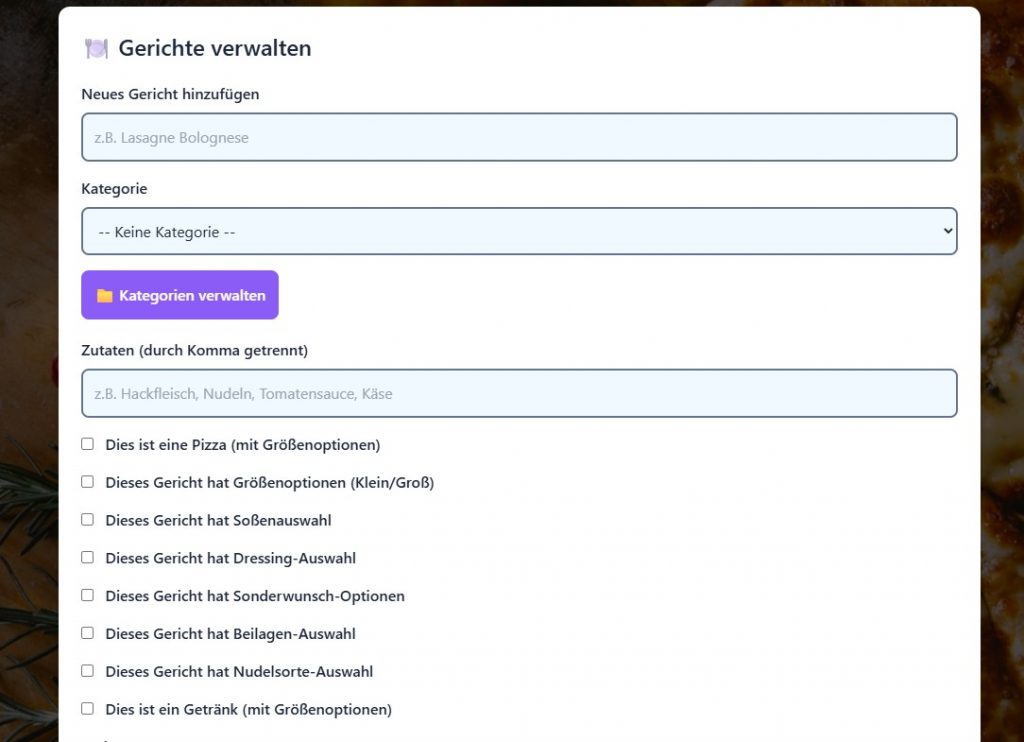 Gerichte Liste download / uploud